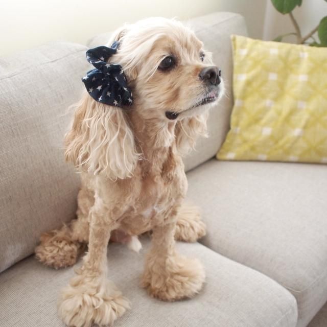 イヤーシュシュを開発しよう!と思ったのは、アメリカンコッカースパニエルのだいもん部長が外耳炎になったことがきっかけでした。蒸れが軽減でき、しかもお顔が見える可愛いアクセサリーはできないかと、試行錯誤の日々が始まります…。